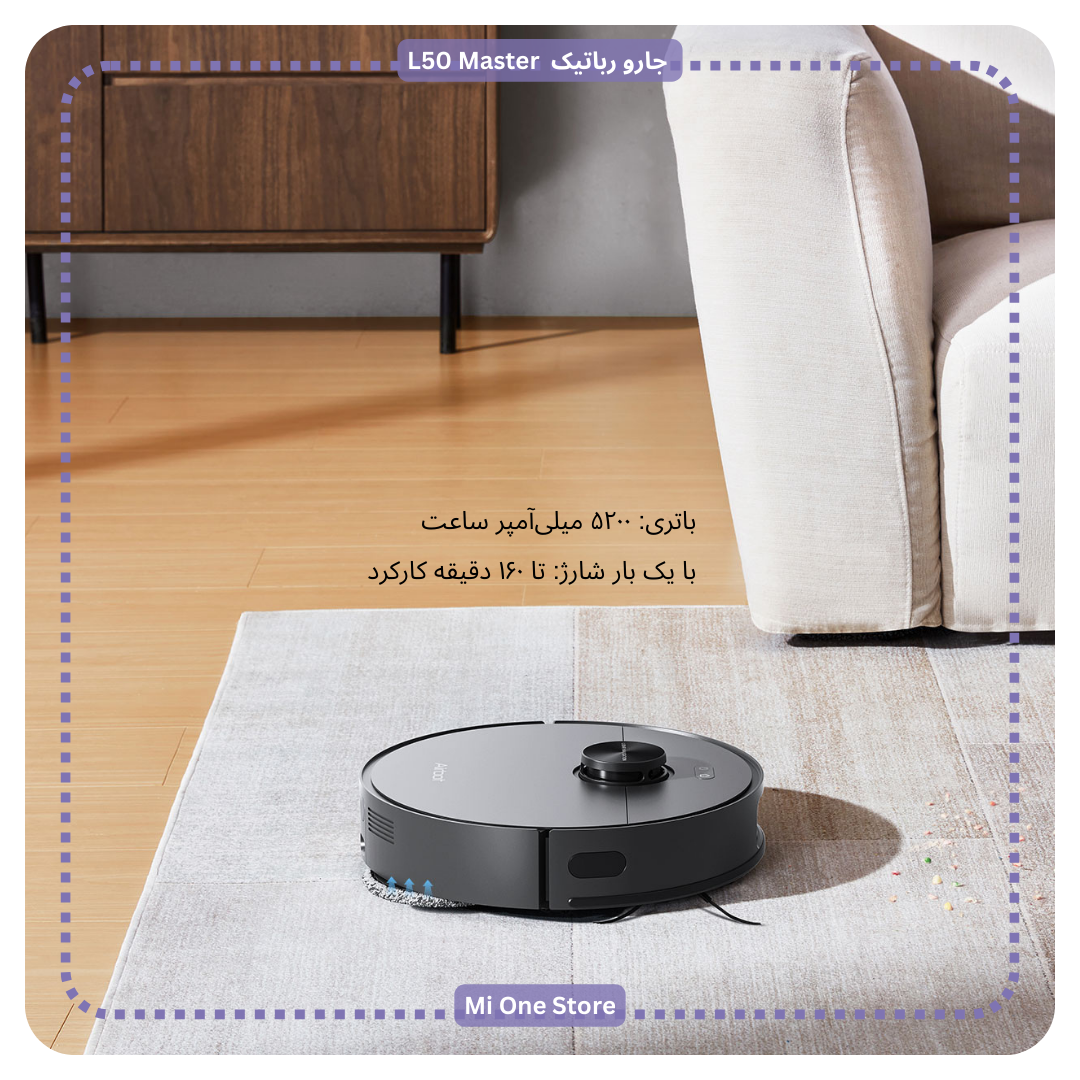 جارو رباتیک L50 Master دارای باتری قدرتمند با شارژدهی طولانیمدت است. این جارورباتیک با داشتن باتری ۵۲۰۰ میلیآمپر ساعت میتواند تا ۱۶۰ دقیقه به صورت مداوم کار کند. این ویژگی برای خانههای بزرگ بسیار مناسب است و ربات میتواند در یک نوبت، بخش بزرگی از محیط را تمیز نماید.
