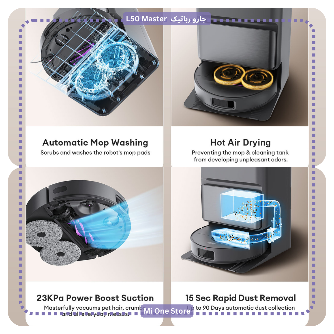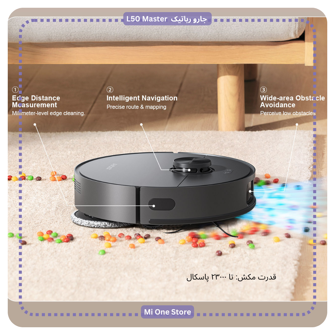 جارورباتیک مدل Airbot L50 Master دارای مکش فوقالعاده ۲۳۰۰۰ پاسکال میباشد که برای پاکیزگی بینقص بسیار مناسب است.