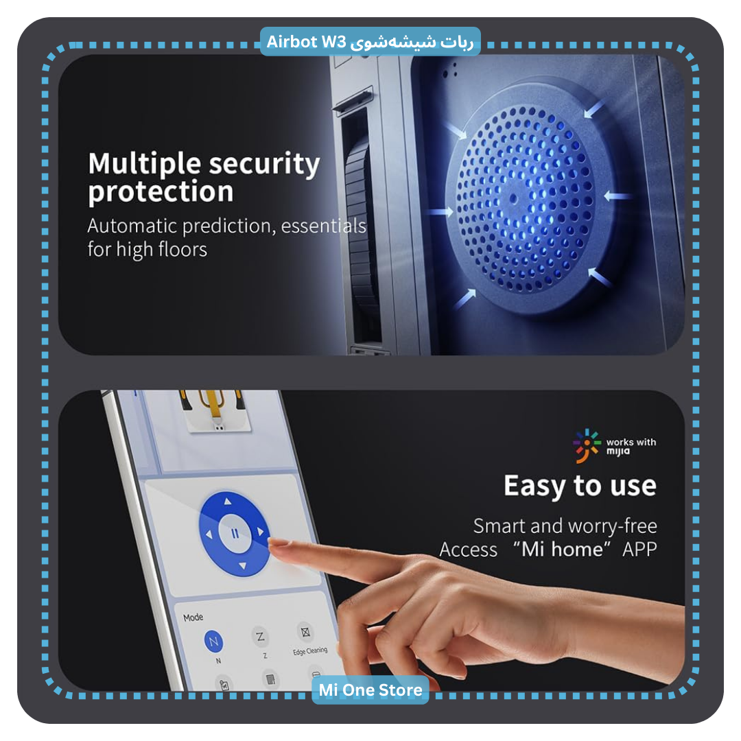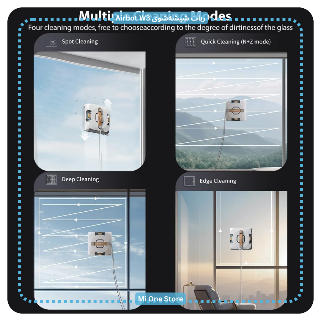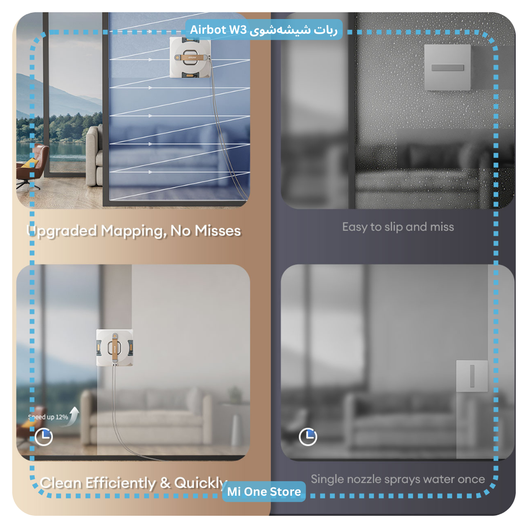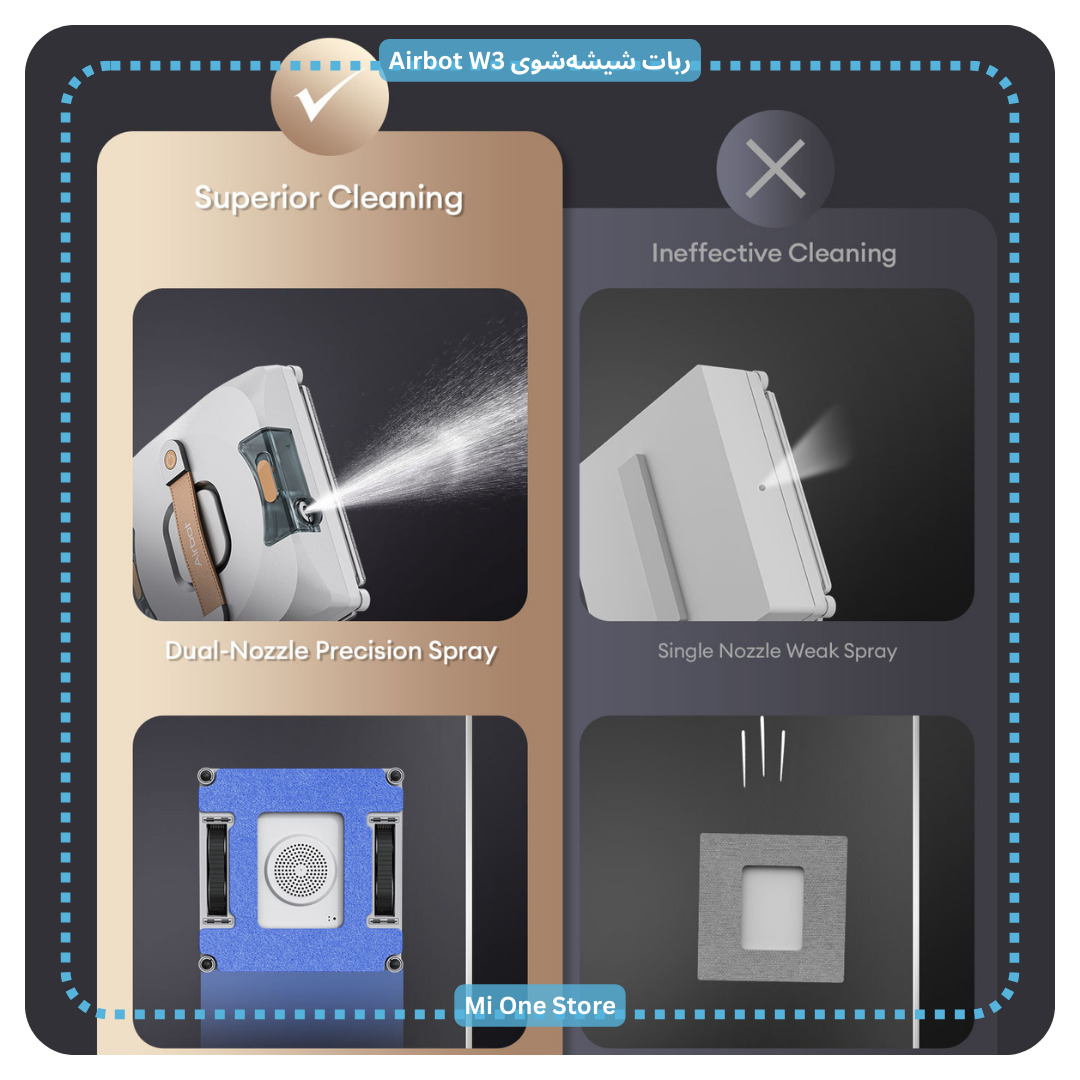 ربات شیشهشوی مدل Airbot W3 با ترکیب فناوریهای نوین مانند مکش قدرتمند ۱۱۰۰۰ پاسکال، اسپری اولتراسونیک و حسگرهای هوشمند، این کار را ساده، ایمن و سریع کرده است.