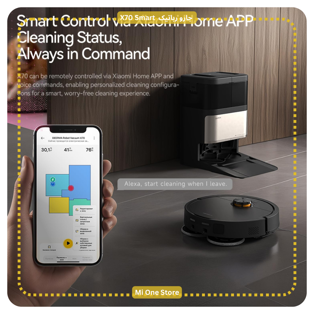 جارو رباتیک X70 با اپلیکیشن Mi Home و دستیارهای صوتی هوشمند مانند Siri، Alexa و Google Assistant سازگار است.