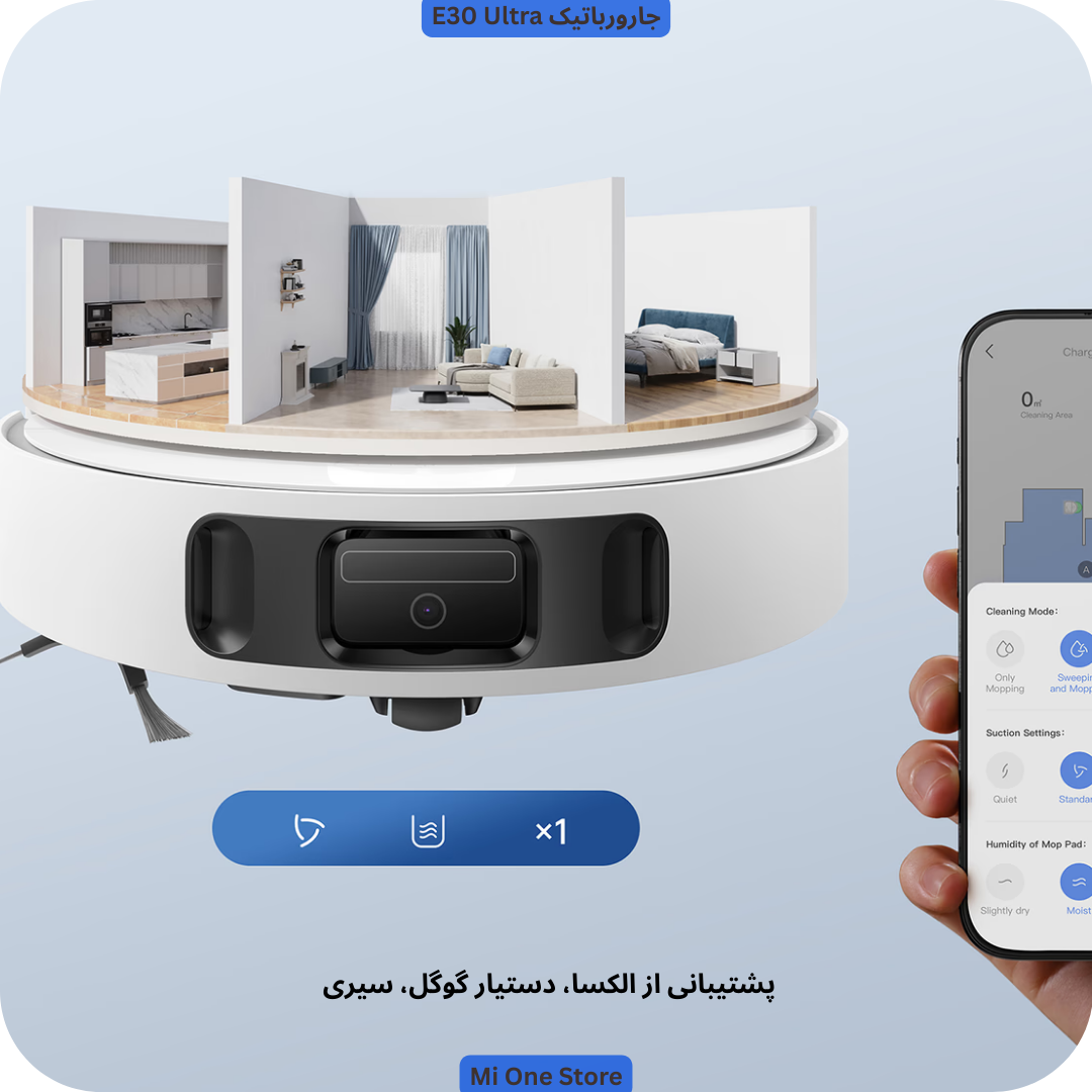 جارورباتیک E30 Ultra با کنترل صوتی آسان دارای پشتیبانی از الکسا، دستیار گوگل، سیری است. شما میتوانید تنها با گفتن یک جمله، ربات را به کار بیندازید.
