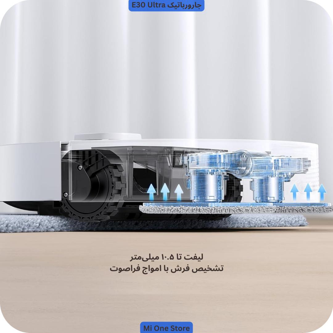 جارورباتیک E30 Ultra دارای تی هوشمند برای محافظت کامل از فرش است. وقتی ربات از کفپوش به فرش میرسد، تی میتواند تا ۱۰.۵ میلیمتر بالا رود، از تماس رطوبت با فرش جلوگیری میشود، فرش خشک و سالم میماند. این ربات دارای تشخیص فرش با امواج فراصوت است. سیستم Ultrasonic Carpet Detection امکان تشخیص دقیق نوع فرش را فراهم میکند و مکش مناسب را تنظیم مینماید.