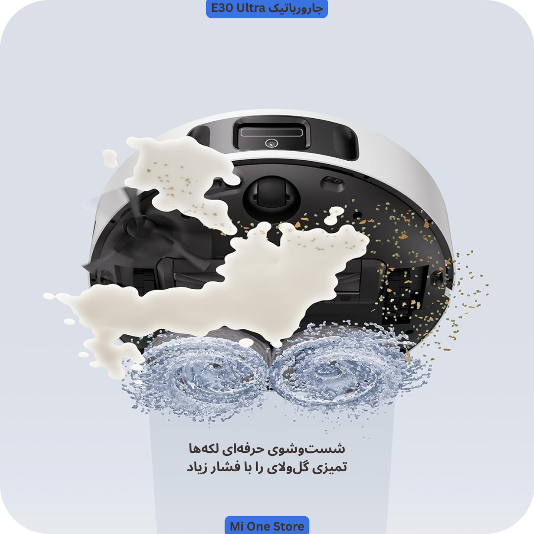 جارورباتیک E30 Ultra دارای شستوشو و نگهداری خودکار تی است. این سیستم مدیریت کامل آب را دارد بدین ترتیب که جاروبرقی مجهز به دو مخزن بزرگ میباشد. یکی مخزن ۴.۵ لیتر آب تمیز و دیگری مخزن ۴ لیتر آب استفادهشده است. در این سیستم باعث میشود ربات بدون دخالت شما تیها را شستوشو دهد، آب کثیف را تخلیه کند، تی را خشک نماید. در این جارورباتیک هوشمند تی پس از شستوشو با جریان هوا خشک میشود تا بوهای نامطبوع ایجاد نشود، کپک و باکتری تشکیل نشود. این قابلیت، E30 Ultra را به یکی از تمیزترین و کمدردسرترین رباتهای تیزن تبدیل میکند.