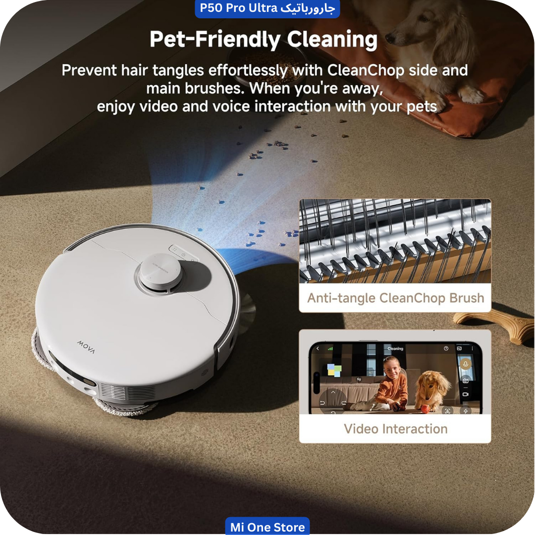 P50 Pro Ultra با دستیارهای صوتی معروف مانند Google Assistant و Amazon Alexa (و حتی دستیار صوتی داخلی خود) سازگار است؛ بنابراین میتوانید با فرمان صوتی جارو یا تیکشی را شروع یا متوقف کنید. شما اگر حیوان خانگی دارید یا میخواهید در نبودتان خانه را زیر نظر بگیرید، این ربات امکانات ویژهای دارد، اپ میتواند برای خانه با حیوانات مناسب باشد و نقشه، نظافت و کنترل از راه دور را فراهم کند. در واقع P50 Pro Ultra میتواند جزئی از خانه هوشمند شما باشد، نظافت را خودکار کند و تعامل راحت با آن را از طریق گوشی یا صدا ممکن سازد. کسانی که حیوان خانگی دارند و با مو، خرده ریز و گرد و غبار سر و کار دارند، سیستم ضد گره و مکش قوی کمک بزرگی است.