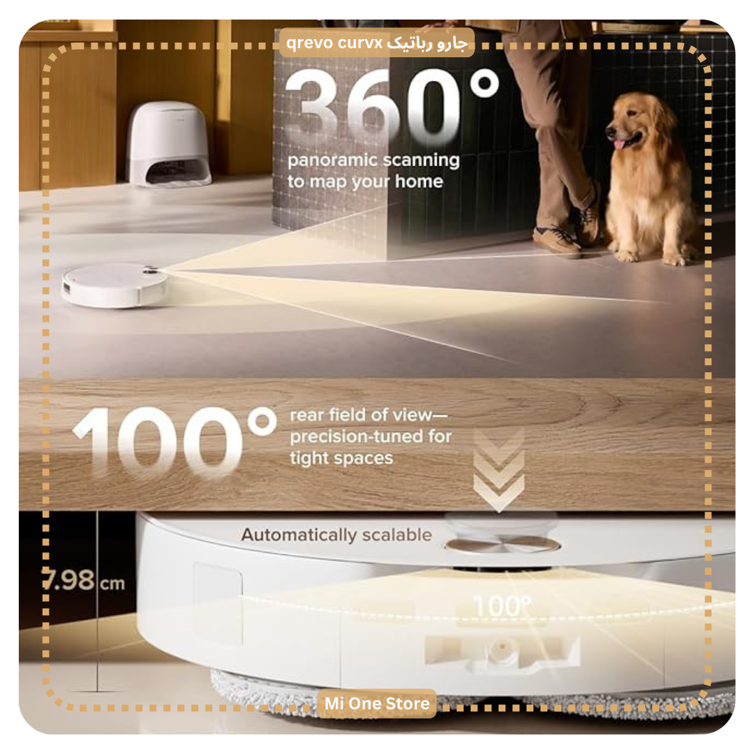 جارورباتیک qrevo curvx دارای سیستم ناوبری RetractSense LiDAR است که با استفاده از حسگرهای برد بلند و الگوریتمهای پیشرفته، نقشهای دقیق از محیط خانه ایجاد میکند. این فناوری بهصورت پویا ارتفاع و زاویهی حسگر را تغییر میدهد تا حتی در فضاهای کمارتفاع یا پر از مبلمان نیز مسیر حرکت بهینه را پیدا کند.