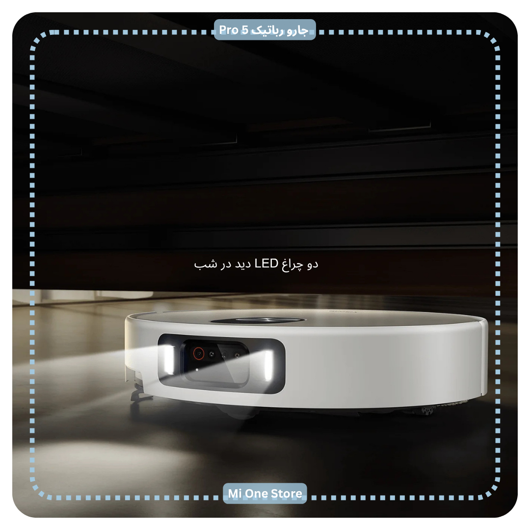 جارو رباتیک ۵ پرو حتی در شرایط کمنور نیز عملکردی عالی دارد. وجود دو چراغ LED دید در شب، به دستگاه کمک میکند تا در تاریکی یا نور کم نیز موانع و گردوغبار را تشخیص دهد. بنابراین شما میتوانید بدون نگرانی از شب یا روز بودن محیط، خانهای تمیز و درخشان داشته باشید.